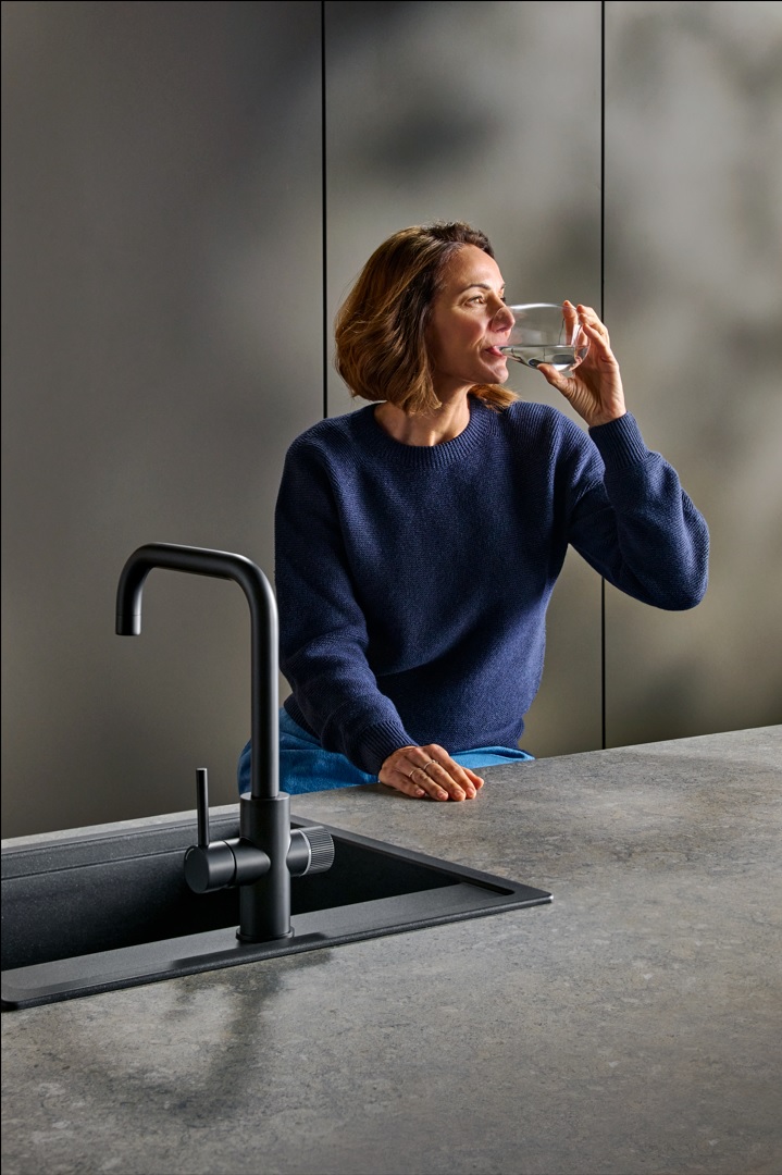 O inovador sistema de filtragem de cinco estágios elimina eficazmente as impurezas, o calcário e o cloro para melhorar a qualidade e o sabor da água, o que contribui para um planeta mais saudável e um estilo de vida mais sustentável.