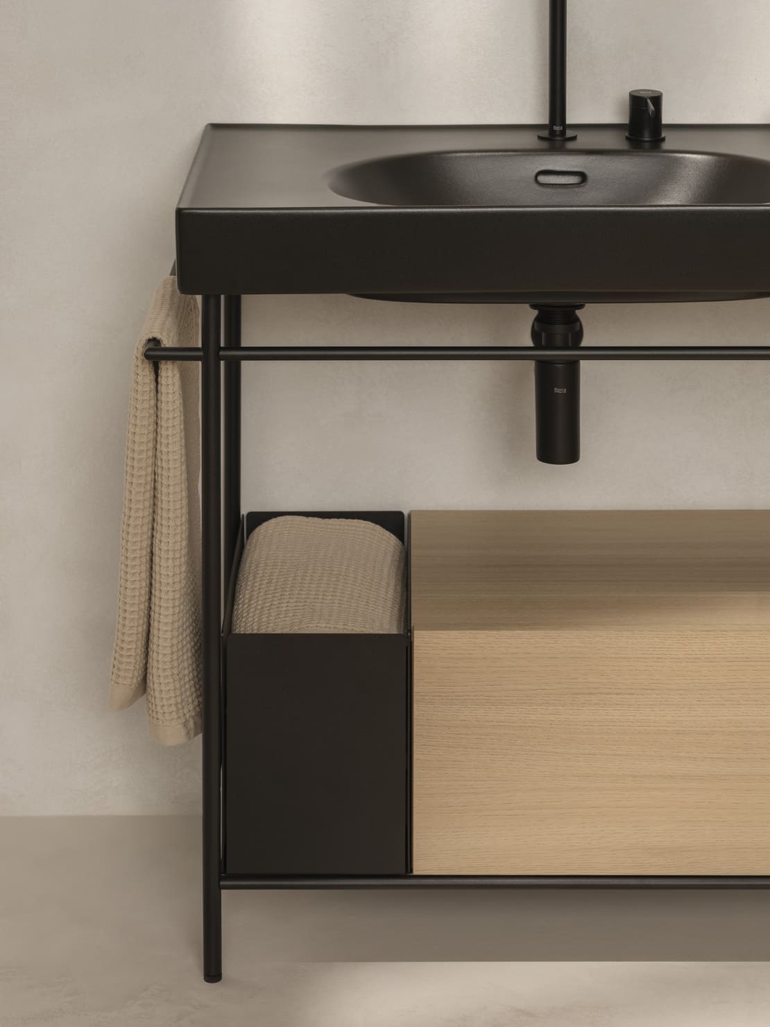 A coleção assegura qualidade e conforto ao incorporar lavatórios extremamente leves, mas resistentes, em Fineceramic®. Complementada por móveis em madeira que acrescentam uma textura rica, esta relação harmoniosa entre louça sanitária e madeira cria um ambiente de conforto e convidativo — perfeito para criar espaços extraordinariamente equilibrados que emanam uma elegância intemporal.
