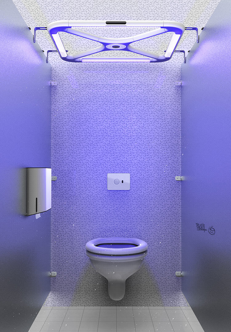 Sistema de desinfecção inteligente que utiliza a luz UV para reduzir germes e agentes patogénicos que se podem propagar nos espaços de banho públicos. Tem sensores para controlar o movimento dos utilizadores: ao detetar que a instalação está vazia, diferentes luzes UV localizadas no teto ativam-se automaticamente, com uma capacidade de destruição patogénica de 99%. O membro do júri Odile Hainaut considera que "é uma boa resposta para garantir a segurança e higiene adequadas nas instalações de uso público".