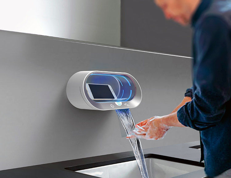 Torneira equipada com uma cabine de luz UV para desinfetar objetos, como telemóveis enquanto o utilizador lava as mãos. O projeto foca-se nos objetos que podem espalhar o coronavírus; especificamente, nos telemóveis, definidos como “a terceira mão que nunca lavamos.” O dispositivo é constituído por uma torneira, um dispensador de sabão e um secador, que são ativados através do sistema sem toque, assim como uma pequena cabine para colocar itens pessoais. Enquanto o utilizador lava as mãos, os objetos são desinfetados através do sistema de luz UV, podendo ser recolhidos posteriormente com as mãos limpas e sem contacto com superfícies de risco.