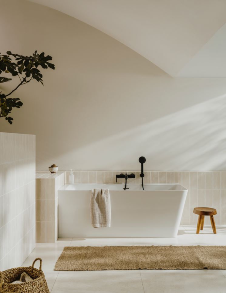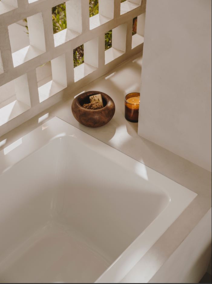 As linhas equilibradas dão forma a uma banheira com referências a um design orgânico que evoca a tranquilidade e a força energética dos elementos no interior da sua casa.