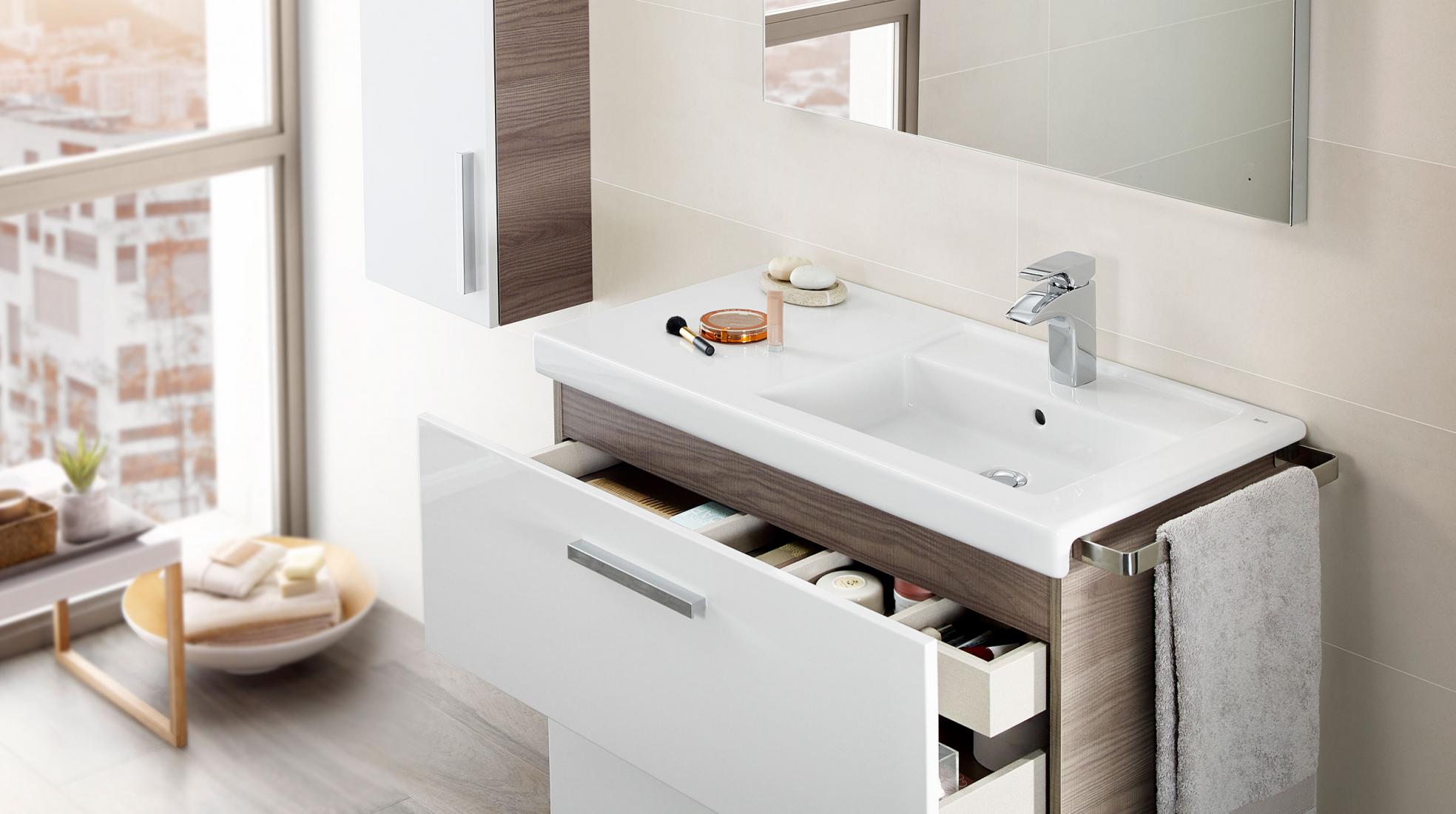 Por último, é importante que saiba que entre os módulos complementares para espaços de banho encontrará soluções funcionais que não necessitam de instalação. A coleção Suma inclui módulos para espaços de banho que assentam no chão e que são ideais para preencher aquele espaço que tinha totalmente desaproveitado. A melhor coisa que estes módulos complementares têm é a possibilidade de terem rodas, que permitirão que os mova no espaço até que as suas necessidades sejam supridas.