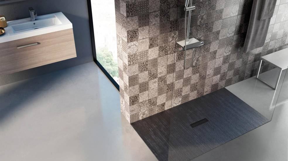 Se se vir confrontado com o dilema de escolher entre uma banheira ou uma base de duche e optar pela segunda hipótese ou, e porque não, pela duas, uma base de duche em ardósia pode ser o que necessita para finalizar a decoração do seu espaço de banho de tons cinza. As coleções Terran, Helios e Aquos ajustam-se perfeitamente ao estilo industrial não só porque o convidam a reproduzir a tonalidade da ardósia ou do cimento, como também por conseguirem simular os seus caraterísticos relevos. Poderá escolher uma base de duche de resina com grelha de aço visível ou o acabamento mais unificado com descarga oculta por uma tampa de Stonex® do mesmo tom que a base de duche.