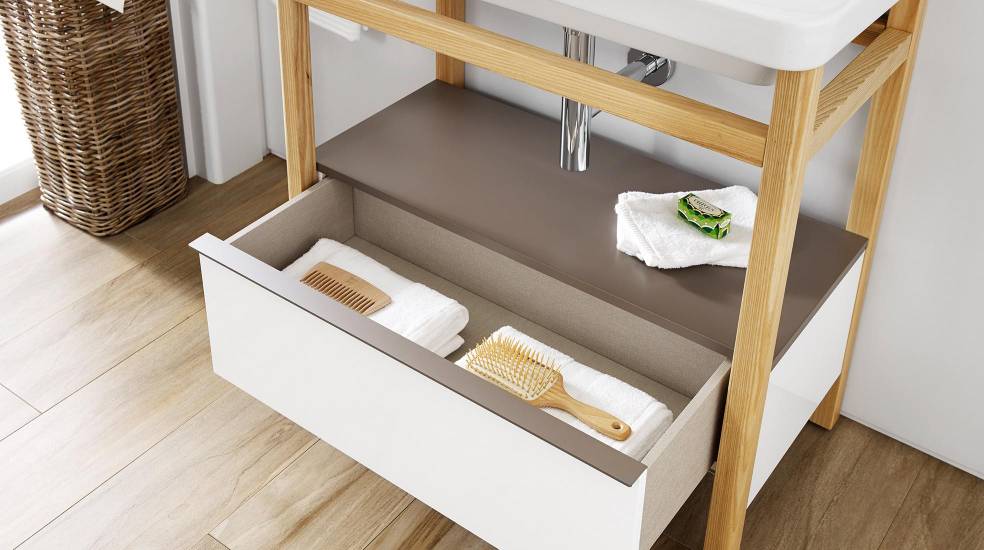 Porque as soluções de armazenamento podem impregnar-se da naturalidade e transparência inerentes ao banho, aposte em estruturas e deixe nas suas mãos aquilo que quer que saibam de si.