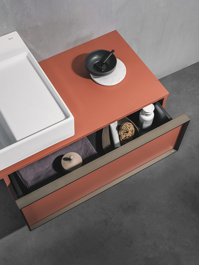 A cor terracota pode adaptar-se a vários estilos de design. Esta tonalidade é perfeita para os modernos espaços urbanos, mas também se adequa a um ambiente rural ou suburbano. As formas modulares de Tura ou a sofisticação dos móveis da coleção Inspira, disponíveis em terracota com moldura em madeira, conferem um toque de exclusividade e estilo a qualquer casa de banho.