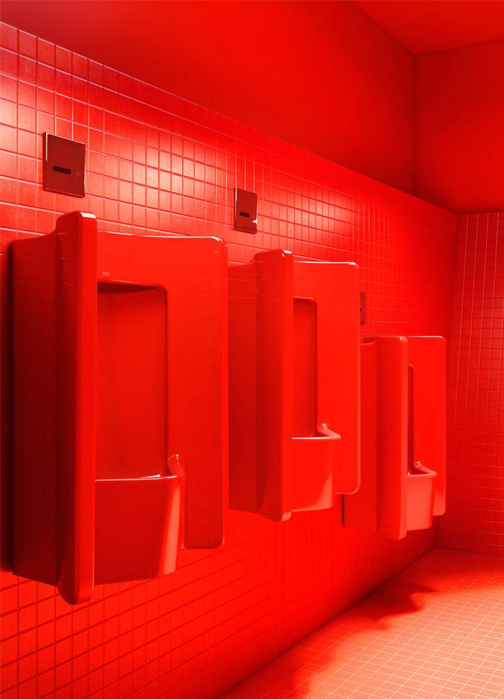 Com duas alturas que visam integrar o visitante, o pavilhão Ferrié disponibiliza uma pequena área comercial, restaurantes, uma sala de projeção e uma exposição ao ar livre com diferentes áreas de repouso. O acesso livre a todos os visitantes apresentou um desafio na hora de conceber os espaços de banho, que tinham de cumprir com os mais exigentes padrões de durabilidade e resistência. Neste caso, Moatti escolheu uma edição especial que combina algumas das coleções contemporâneas da Roca. O lavatório Diverta, o urinol Site e, uma vez mais, a sanita Meridian na sua versão suspensa foram concebidos num vermelho marcante de forma a homenagear o design original da mítica torre de Gustave Eiffel, símbolo da Exposição Universal de 1889.