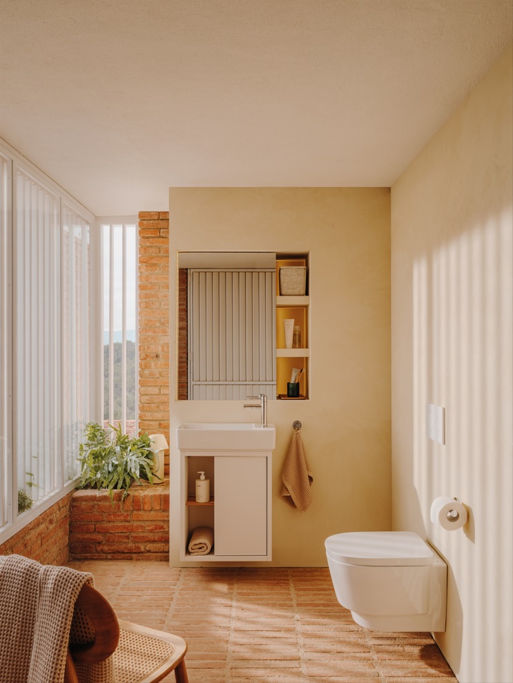 Tura adapta-se na perfeição ao meio envolvente, quer se trate de um apartamento moderno ou de uma casa rural junto ao mar. O estilo intemporal e as formas arquitetónicas combinadas com tons e texturas quentes abrem o potencial para espaços de banho inspiradores que transcendem o quotidiano e despertam a imaginação.