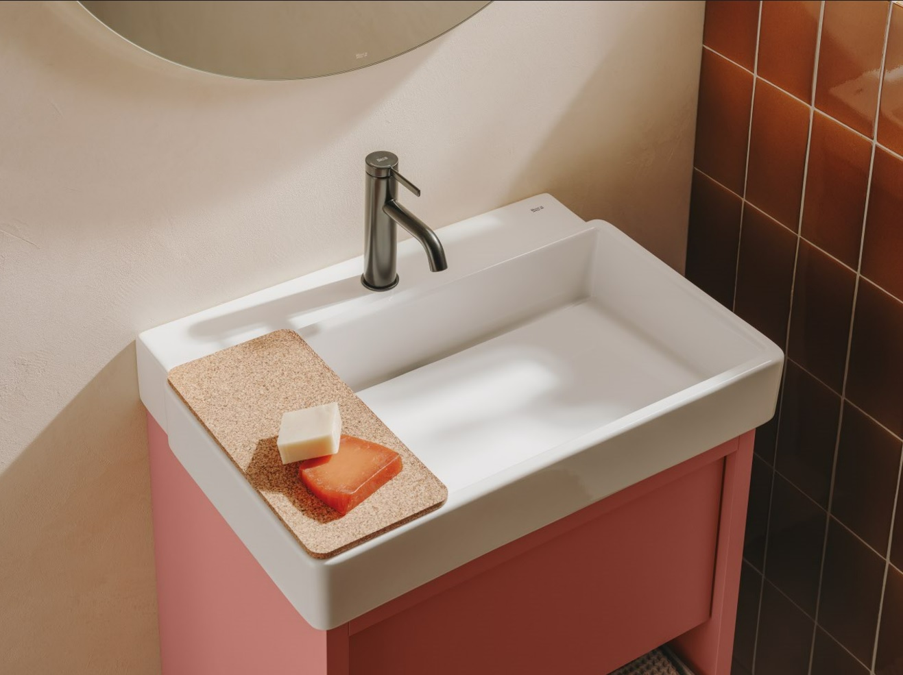 ✓ Tampa de cortiça reciclada para as caixas que serve também como bandeja para os lavatórios.